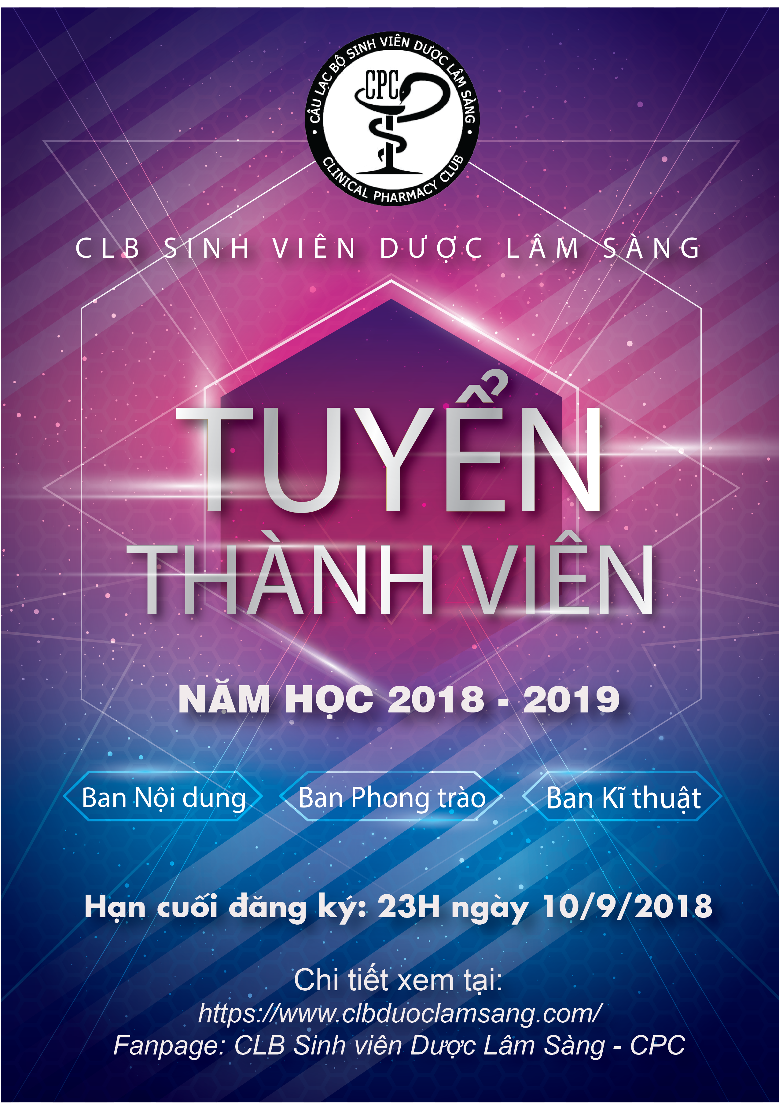 Một năm học mới lại bắt đầu, để tiếp tục xây dựng và phát triển CLB trở thành nơi ươm mầm cho các ban sinh viên Dược đam mê chuyên ngành Dược Lâm Sàng, rèn luyện kĩ năng mềm cho sinh viên trường Đại Học Y Dược Huế. Không chỉ là một CLB học thuật, với các hoạt động phong trào ngày càng đa dạng, sôi nổi, CLB chắc hẳn sẽ là một điểm đến đầy ý nghĩa mà các bạn sinh viên Dược khoa đang tìm kiếm.